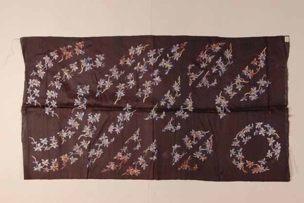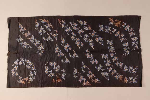 清石青缎地彩绣折枝桂花纹衣料