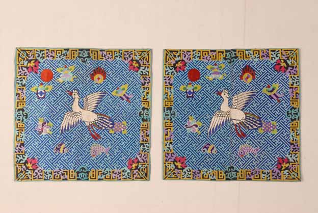 清彩绣八宝白鹇纹补,色泽亮丽,刺绣精巧。