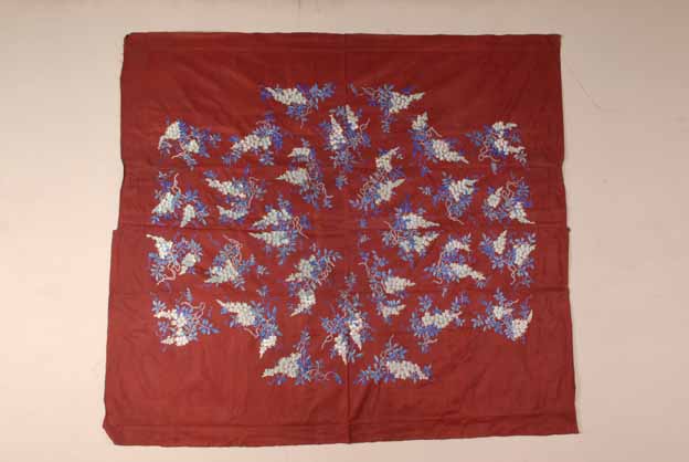 清绫地彩绣红藤罗花纹衣料