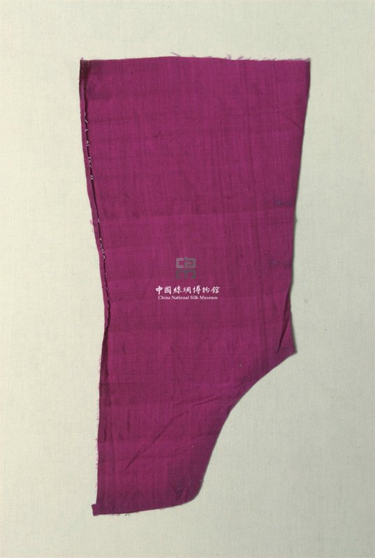 形状内容描述 此件织物采用1/1平纹组织织成,是较为常见的绢类织物,保存情况较好,其经线采用桑蚕丝,纬线采用棉纱,原可能用作衣片。