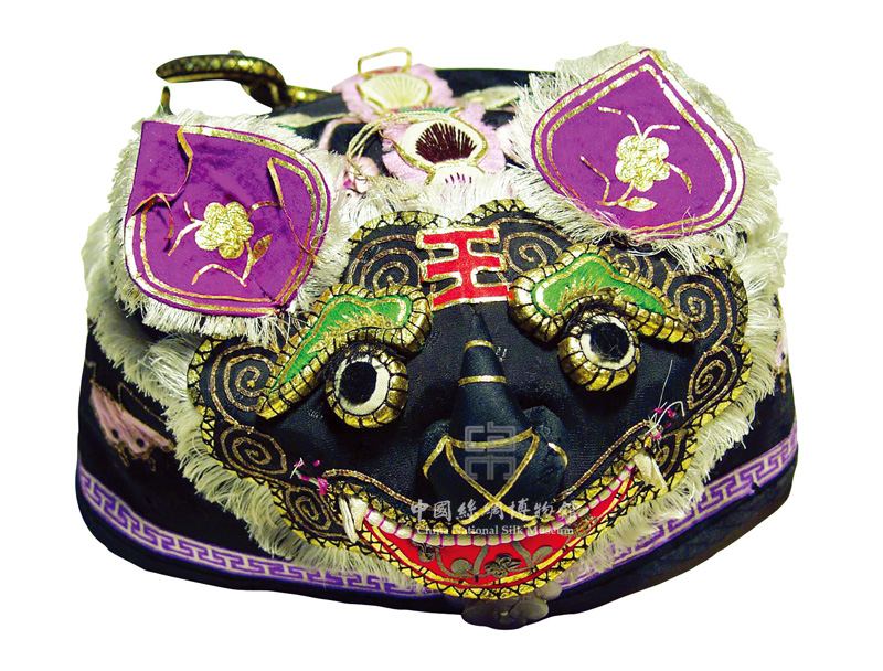 简介:此帽虎头形态威武,正中一个红色“王”字道明了身份。黑色缎为地,紫色、绿色、粉色、白色,大胆的色彩搭配,把浓厚的乡土气息散发无已。