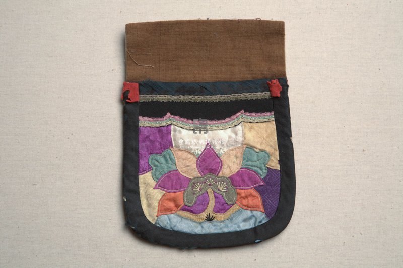 五彩绸贴绣荷花钱袋