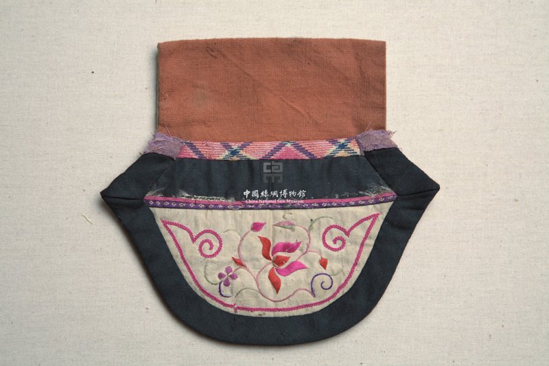 形状内容描述:该钱袋外观呈碗形,绣地采用白色素绢,其上以彩色丝线绣出花卉纹样,并用玫红色丝线以拉锁子的绣法绣出边饰。