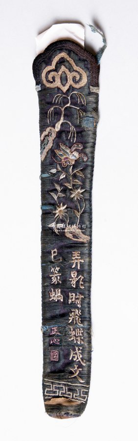 黑段彩绣松竹柳扇套