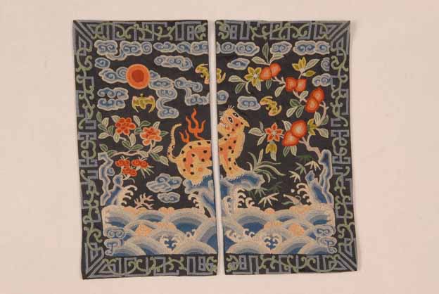清打籽绣虎纹前补,色泽亮丽,刺绣精巧。