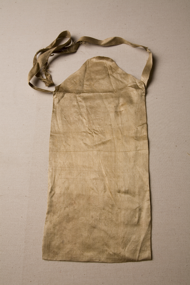 描述:此香袋以黄色素缎制成,由一块织物缝制而成,香袋有盖,盖长8cm,并装有以同种面料制成的挎带。