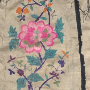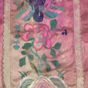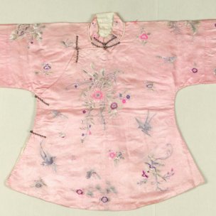 民国粉红缎地绣花夹衣