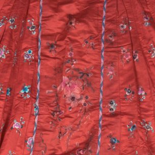 大红缎地绣花裙