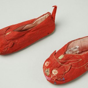 彩绣红绸小孩虎头鞋