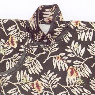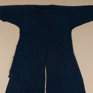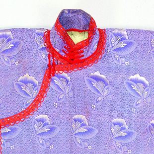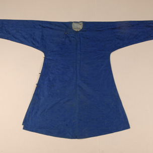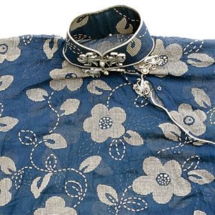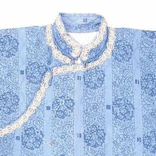 蓝色印花绉绸倒大袖袄&花卉纹芝麻纱裙