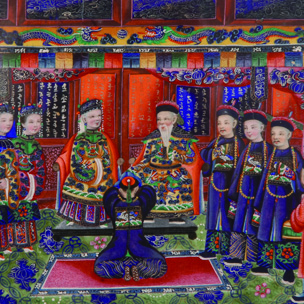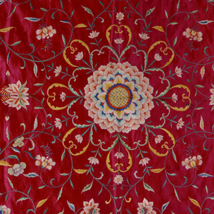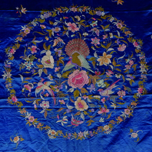 清外销蓝缎地彩绣五彩花鸟纹壁挂