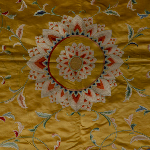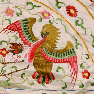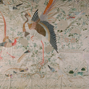 清外销白缎地彩绣缠枝莲花鸟纹被单