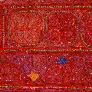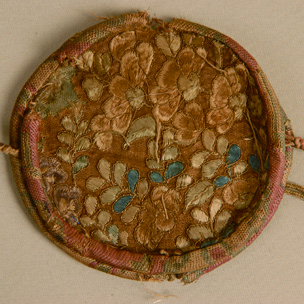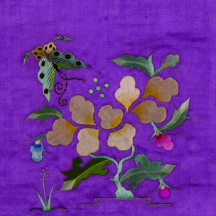 民国玫红缎地彩绣花蝶鸟纹枕顶