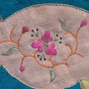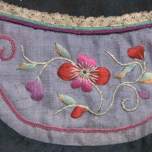 玫红绸贴绣花卉钱袋