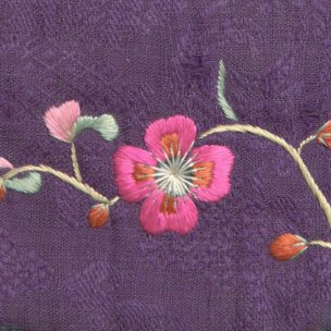 紫红绸绣桃花钱袋