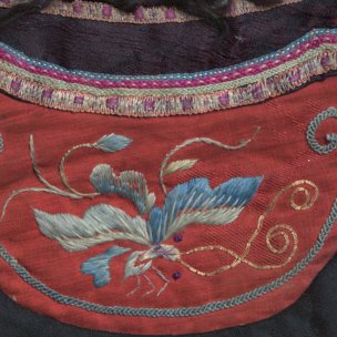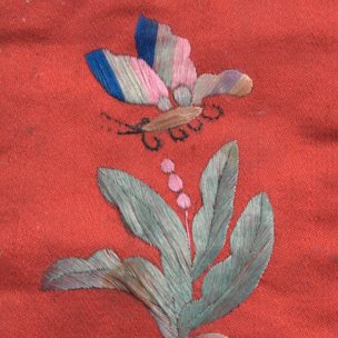 红缎地彩绣花蝶钱袋