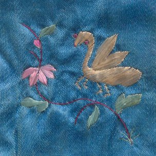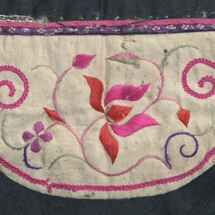 白绢地彩绣花卉碗形钱袋