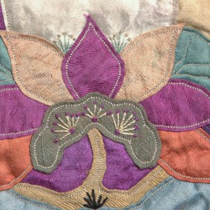 五彩绸贴绣荷花钱袋