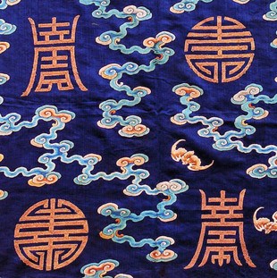 蓝缎地盘金彩绣云蝠寿字纹零料