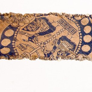 唐蓝绿色地团窠联珠对格力芬纹锦