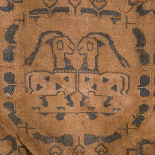 唐黄地团窠联珠对马纹锦