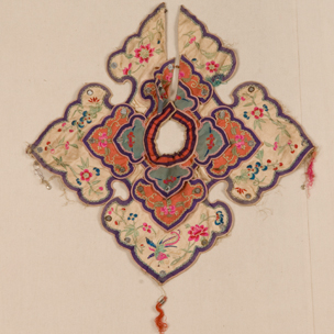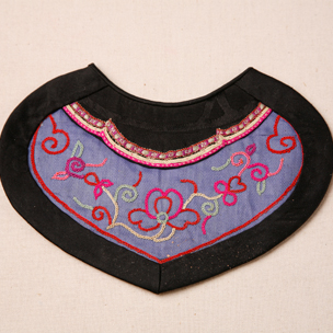人字纹绫拉锁绣花卉口围片