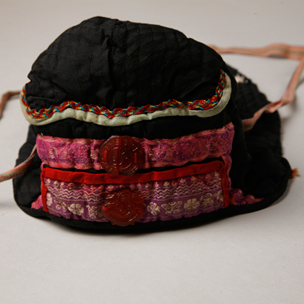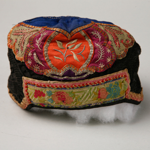 黑绸贴绣花卉童帽