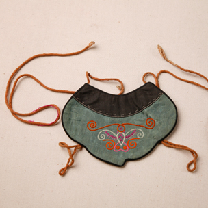 绿绸拉锁绣蝴蝶纹口围片