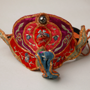 堆绫彩绣花蝶童帽